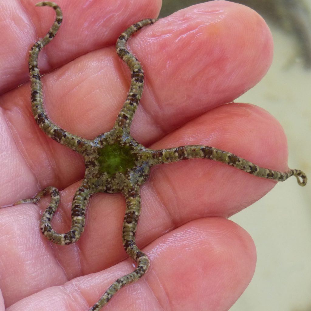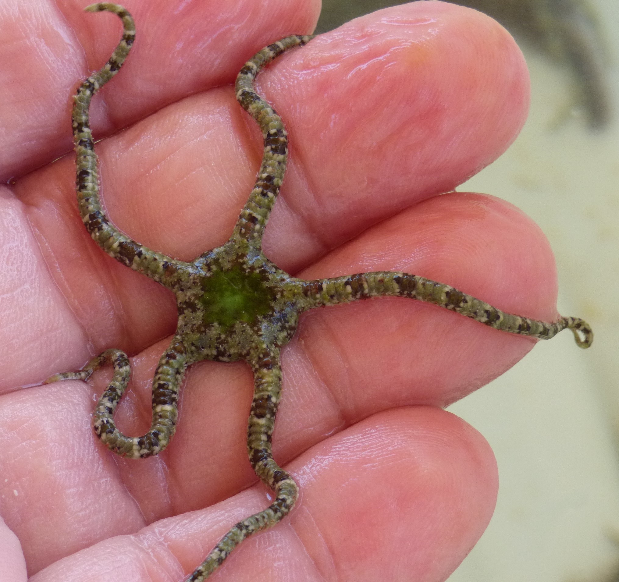 se distingue fácilmente de sus congéneres por las placas dorsales de sus brazos peculiarmente fragmentadas. Gránulos densos, redondeados o poligonales cubren el disco, los escudos radiales pueden estar desnudos o completamente cubiertos por gránulos.