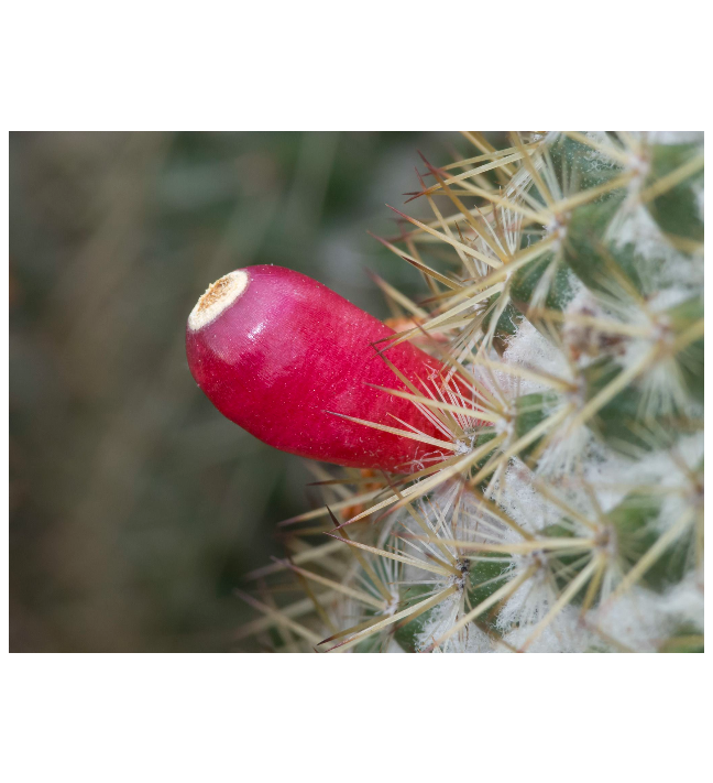 unos 2 cm de largo y abundante lana blanca en las axilas, aréolas separadas con abundantes