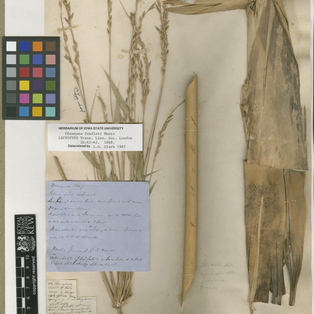 hojas foliosas cartáceas de 9-15 cm de largo. Panículas espiciformes de 5-12 cm de largo,