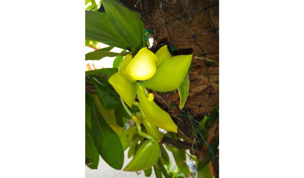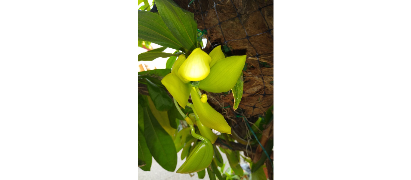 Hierba epífita. Pseudobulbos erectos, ligeramente encorvados, cilíndricos.Hojas dispuestas en forma de abanico. Inflorescencias laterales con 1-6 flores, masculinas, femeninas o hermafroditas, amarillo-verdosas, grandes y fragantes.